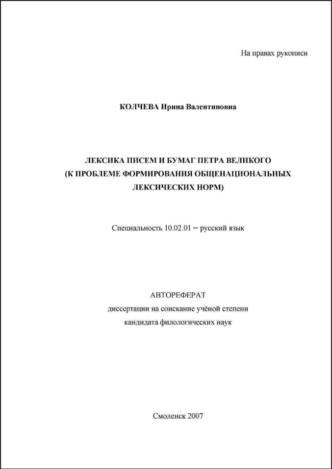 Язык начальной эпохи формирования русской нации (середина XVII – середина XVIII вв.)